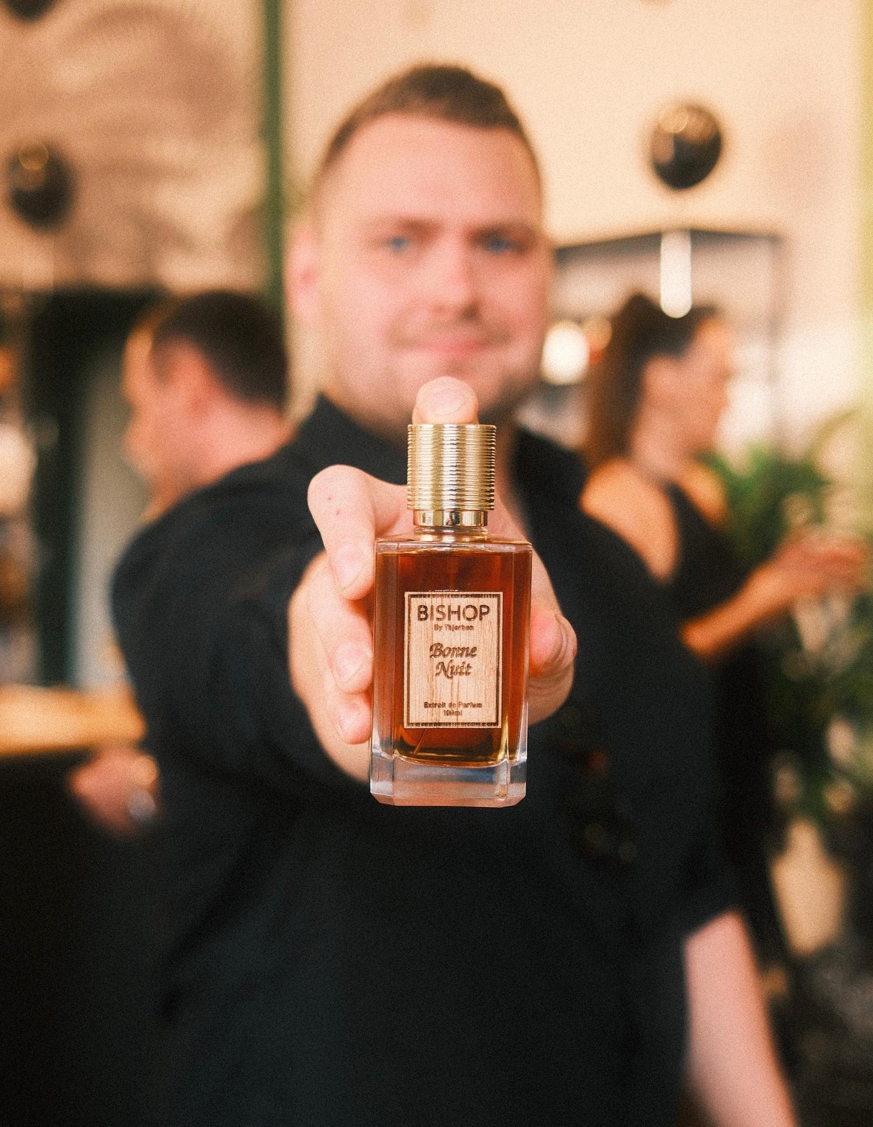 „Bonne Nuit“ eröffnet mit einem unerwarteten Spiel aus Apfel und Aprikose, deren fruchtige Süße von einem Hauch kostbarem Safran veredelt wird. Die ersten Sekunden sind hell, verlockend und voller Spannung – wie der erste Blick, der alles verändern kann.